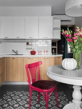 Сначала определяемся с цветовой парой, например, зеленый/красный. Далее раскладываем пропорции: какого цвета сделаем больше. И уже потом выбираем цветность (разбеленные оттенки или затемненные). Например, чистые, открытые цвета такие, как алый, красный безопаснее добавлять акцентами – картинами, декоративными подушками, вазами и тд. А вот если есть желание добавить цвет в большем объеме, но есть опасения, что будет слишком ярко – выбирайте разбеленные варианты.